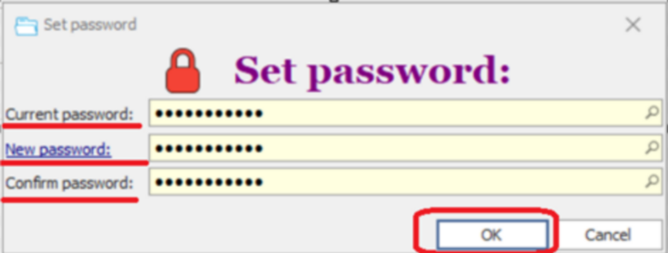 You need to hit OK and set up the new password as below: